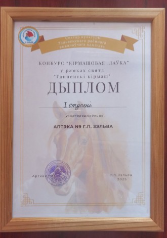 Па выніках конкурсу аптэка №9 г.п.Зэльва была прызнана пераможцам і ўзнагароджана дыпломам першай ступені.