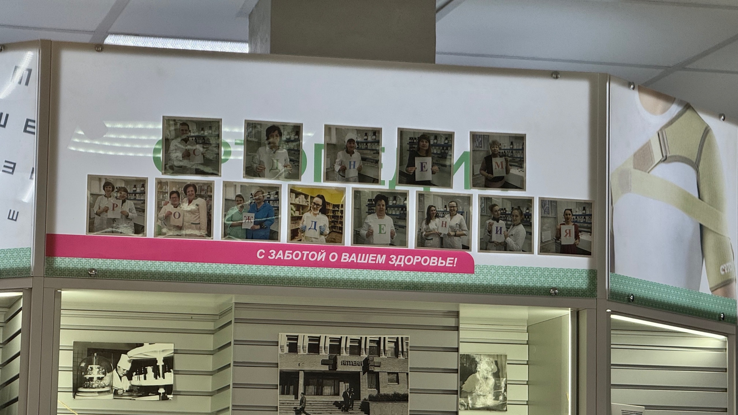 Примечательно, что одну из витрин аптеки сегодня превратили в «аллею памяти», где каждый мог окунуться в путь аптеки №153.